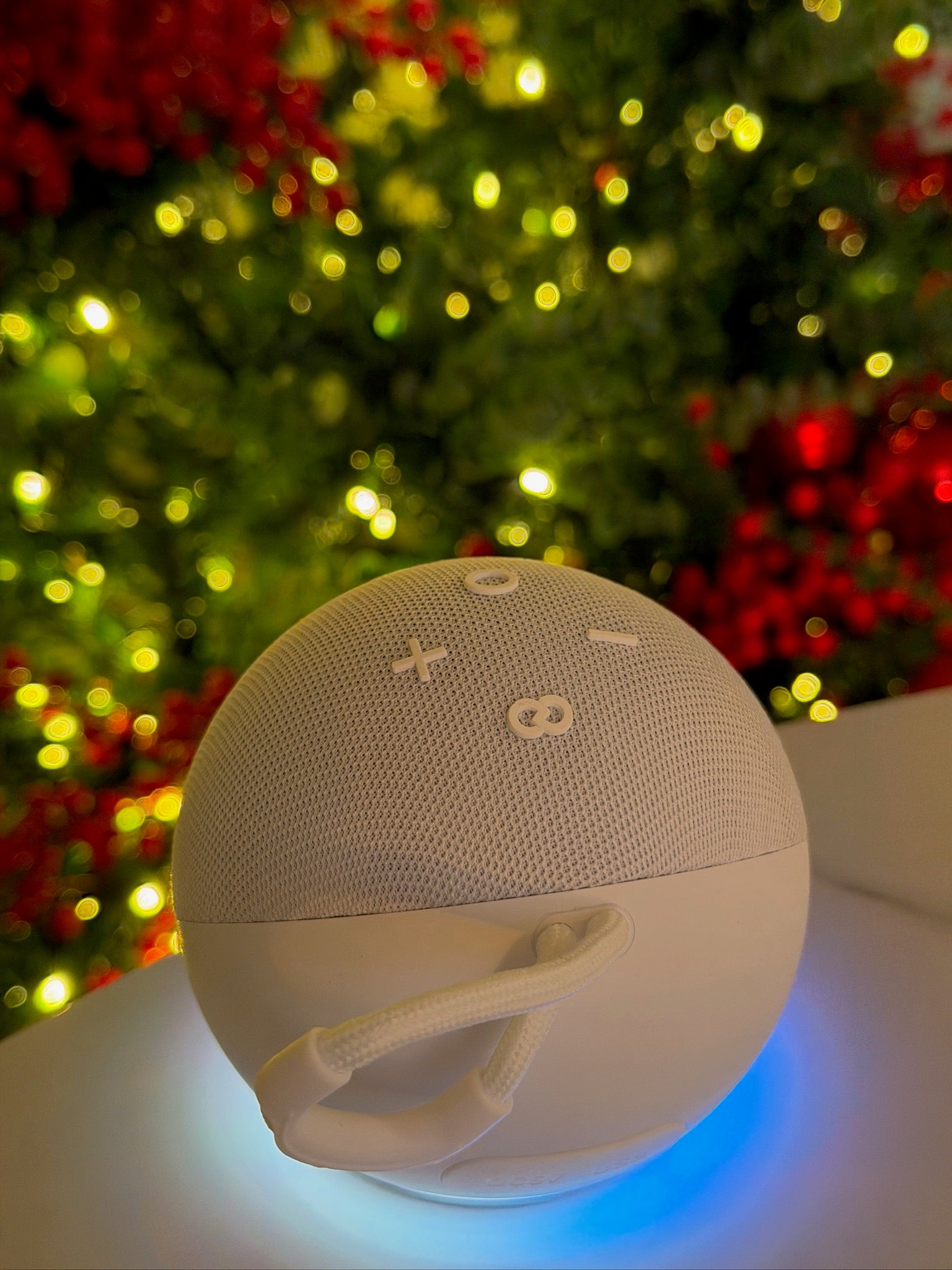 Haz tu hogar más inteligente con este parlante inteligente con asistente de voz, ideal para reproducir música, hacer preguntas, configurar alarmas y controlar dispositivos compatibles solo con tu voz.